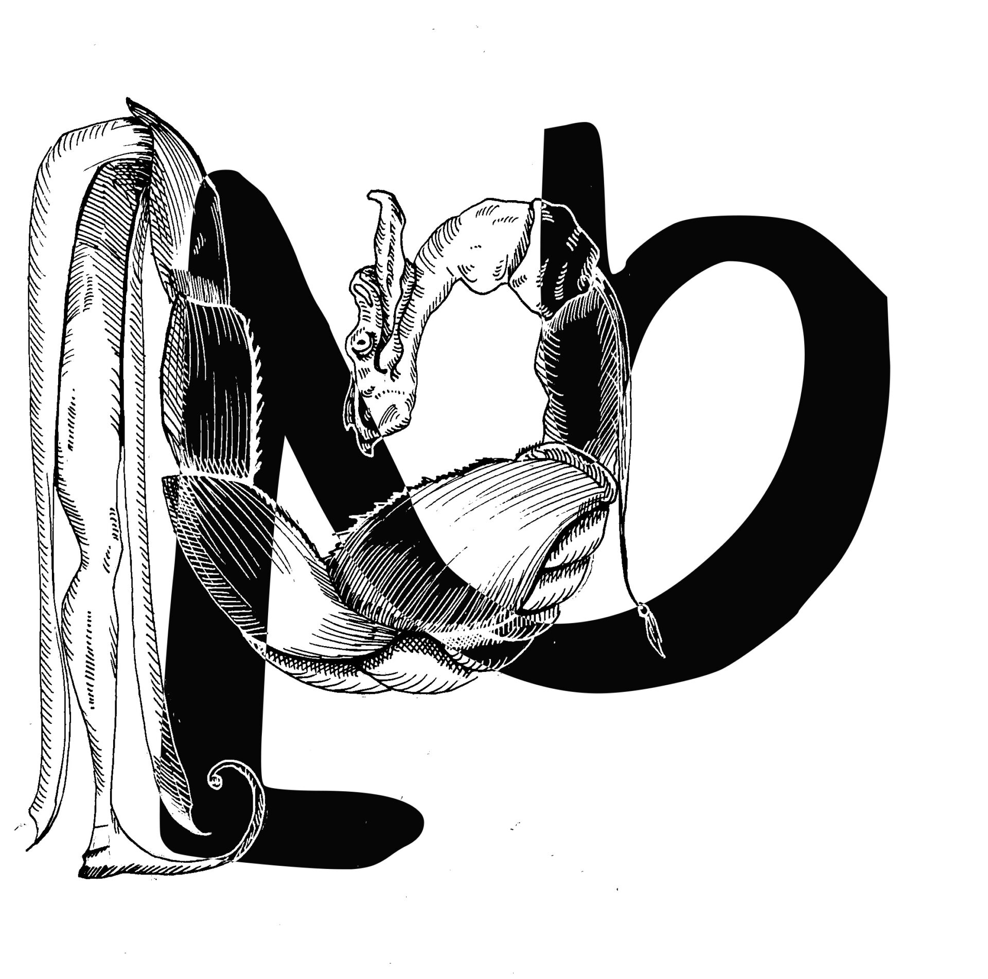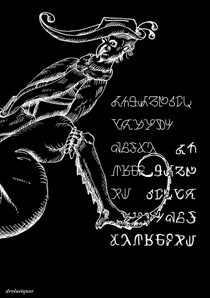 Projet expérimental dans le cadre du workshop organisé par Raoul Bonnaffé de Bonjour Monde autour des gravures du livre «Les Songes Drolatiques de Pantagruel» de François Rabelais (1565) et de la figure du monstre médiéval. Le projet allie design typographique à l’illustration.